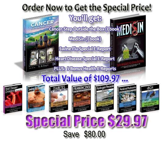 Cancer-Step Outside the Box, MediSin, and the 7 bonus e-reports are digital and will be available for immediate download.